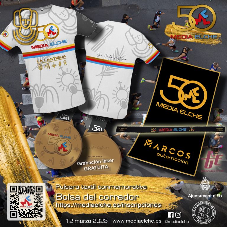 bolsa del corredor Bolsa del corredor de nuestra 50 Edición: Nuestra camiseta técnica, con tejido muy ligero y transpirable, y con un diseño totalmente sublimado conmemorativo de nuestra 50 Edición Nuestra medalla finisher, de metal que incluye, además, la grabación gratuita por láser de tu nombre y la marca que hagas en meta Toalla conmemorativa de rizo de algodón Pulsera conmemorativa de tela