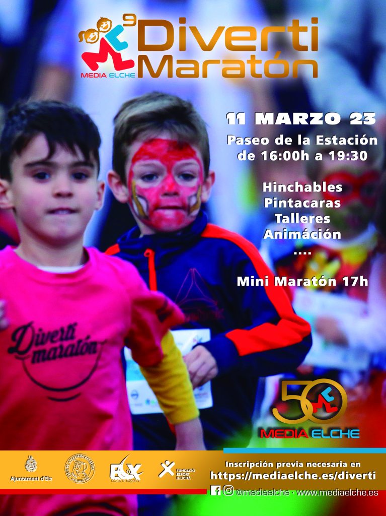 divertimaratón En 2023 vuelve por primera vez después de la pandemia, nuestra DivertiMaratón ¡! Sábado 11 de marzo de 2023 Ubicación: Paseo de la Estación de 16:00h a 19:30h Tendremos hinchables , pintacaras, talleres, animáción …. y nuestra Mini Maratón por edades, que empezará a las 17:00hActividades para niños y as nacidos entre el 2009 y 2018 (ambos incluídos) Para participar es necesaria la inscripción previa pulsando el siguiente botón Inscripción gratuita DivertiMaratón Se admitirán inscripciones hasta las 14h del día 11 de marzo de 2013 o agotar dorsales Bases 9ª Divertimaratón Descarga las bases de la DivertiMaratón